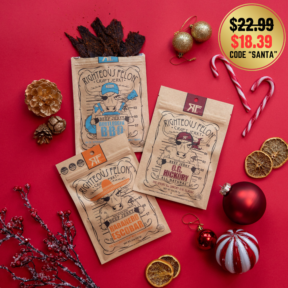 The Original Gangster 3 Pack: our top 3 jerky flavors, gift-worthy for any carnivore's wish list!