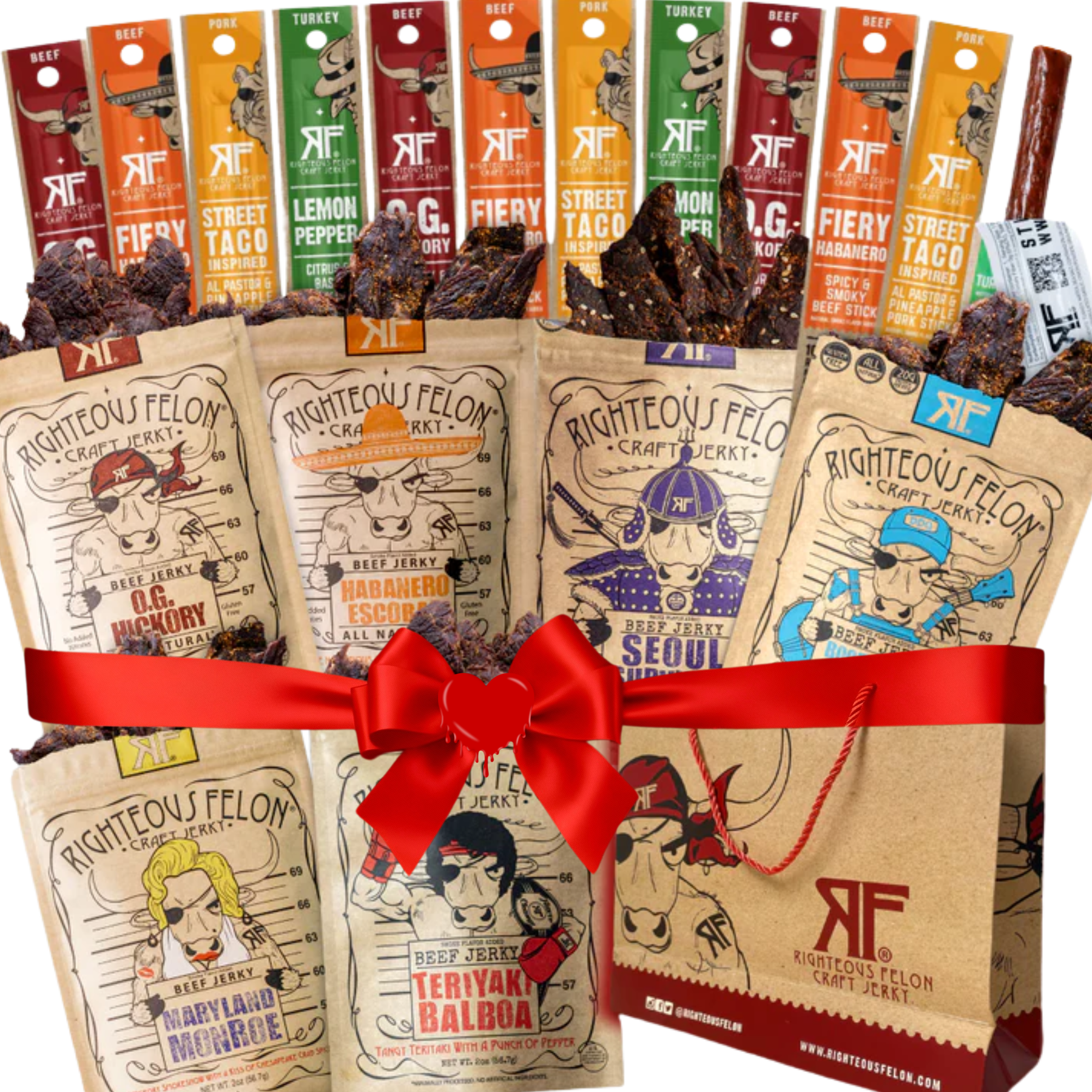 Each bundle comes in a stylish gift bag, making it an ideal present for holidays, birthdays, or any special occasion. Treat yourself or someone special to the best of Righteous Felon Craft Jerky today!